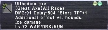 Ulfhedinn Axe Obtained from killing Ullikummi (NM) in Shrine of Ru'Avitau Level 85-87