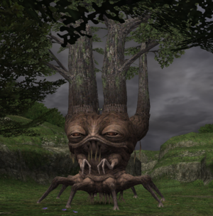 More commonly spelled Leshii or Leszi, in Slavic folklore, it was a group of woodland spirits that would protect forests and the animals that dwelled therein. They were said to be able to take the form of any plant or animal, as well as human form. When in human form, they resembled peasants, only they had glowing eyes and backwards shoes. Some tales depicted them as a giant, talking mushroom. They appear as tall men sometimes covered in black hair with hooves and horns in tales after the arrival of Christianity. Anyone who befriended a Leshy would be taught magic. Farmers and shepherds frequently made pacts with the Leshy to protect their crops and herd. They were slightly mischievous in their ends to protect the woods, such as hiding any woodchopper's axe they came across. Leshy would die in October with the Autumn and revive in April with the Spring. Leshonki (more commonly spelled Leshonky) are the children of Leshy and Leshachikha are the wives of the Leshy.