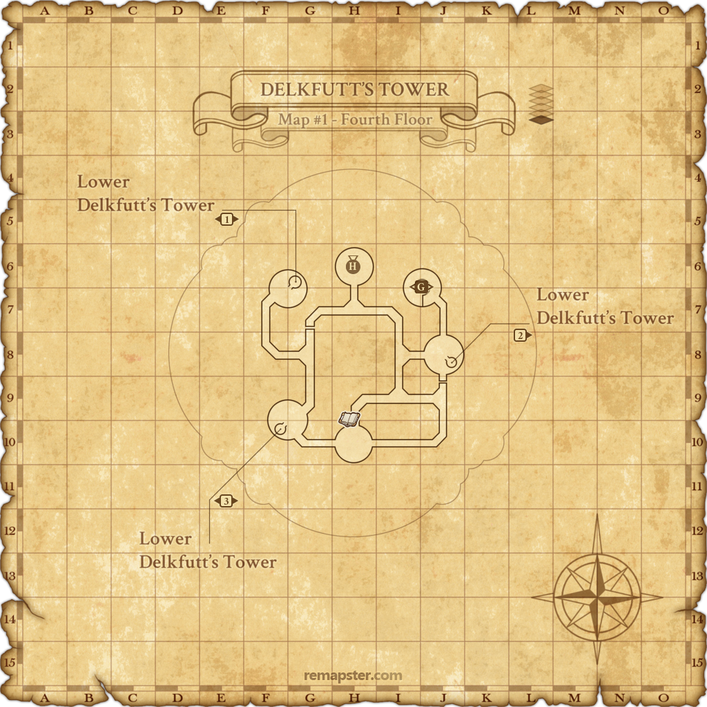 This tower in the North of Qufim Island is overrun by a wide range of Gigas who were trapped there at the end of the Great War. Isolated in their gloomy tower, the Gigas are constantly searching for a way to get back to their homeland. The tower is split into three sections, Lower Delkfutt's Tower (Basement and Floors 1-3), Middle Delkfutt's Tower (Floors 4-9) and Upper Delkfutt's Tower (Floors 10-12).