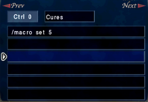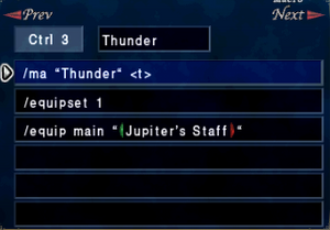 Standard party or not, you want to be able to quickly access your spells. All spells are important and you want to be able to access any spell on the fly along with the proper equipment swap. You're going to need to access lower level nukes when you need to quickly kill a monster before it may kill you/when you need to chain nuke something down. Here are some examples of how to set up your macros for easy/quick access so you don't have to waste time searching through your menus (So you don't miss a magic burst or back up heal opportunity). Each macro set will have your single target and -GA nukes in the same position for each tier (1-4). With this macro set up, you can quickly scroll through your tiers of single target spells and -GAs. You will also have access to resting, drain, and stun on each page, also in the same position. Could also swap in Aspir as needed. Each macro will have the spell as well as appropriate gear swap for each spell (staves, skill+, etc) Ex: /equipset 10. The macros labeled "DOTS" and "CURES" at the end of each set will jump your macros to the appropriate macro set via "/macro set x" "NUKES" will jump your macros to the appropriate tier of nukes/-agas Again, these are all just some examples in how to set up your macros for accessing spells on the fly. Your preferences may differ! |