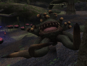 Voluptuous Vilma was first rumored to exist in the summer of 2005. In December of that year, the Ballista Royale Semi-Finals were held on the non-player test world Atomos. During this event, one combatant snuck off and made his way to Yuhtunga Jungle in search of the rumored Vilma. As there are normally no players on Atomos, he found Vilma, undisturbed, and took a few screenshots of her--thus confirming her existence. She has been seen since then on the regular worlds with relative rarity, due to her somewhat complicated spawning conditions.